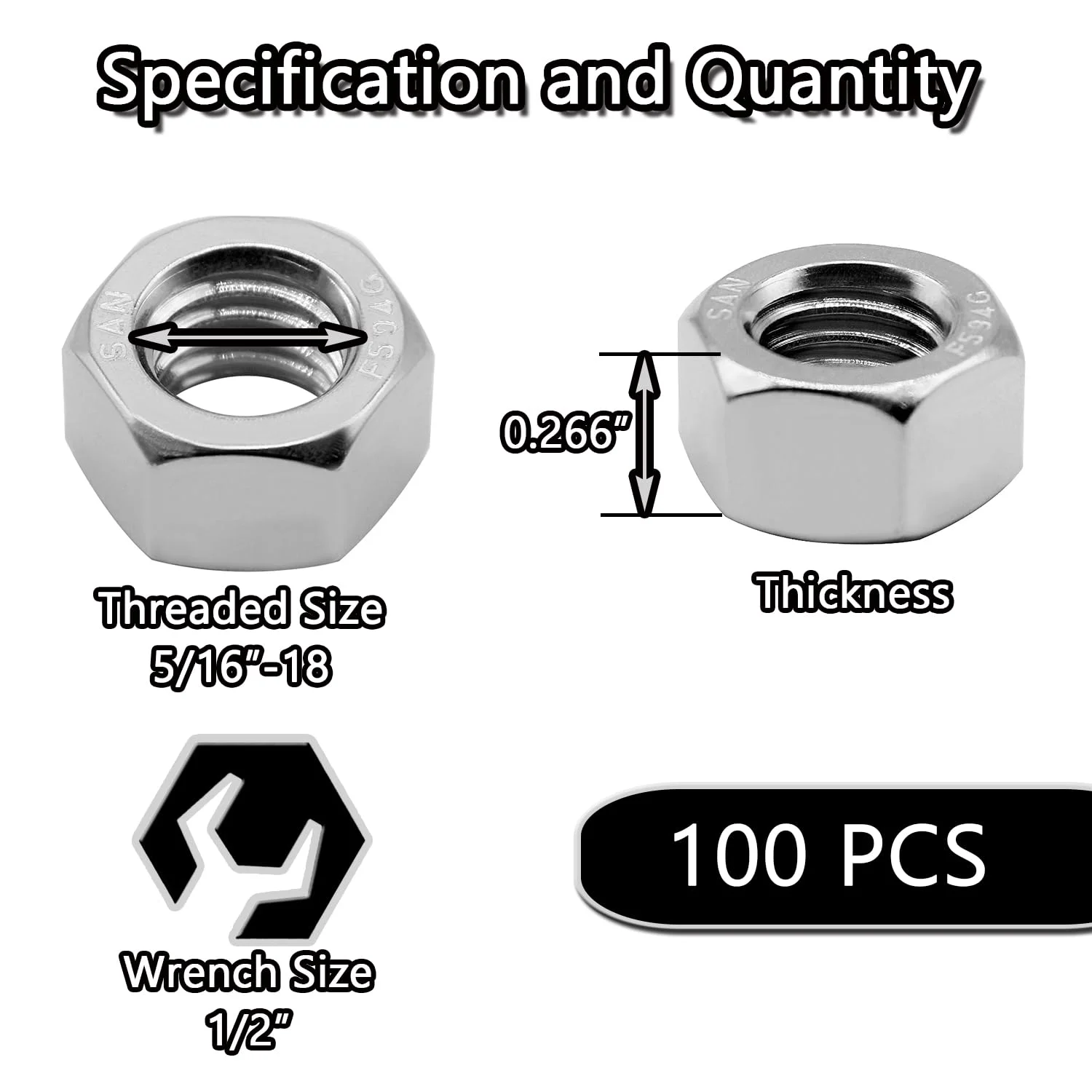 The Beduan 100PCS 5/16"-18 Nuts set offers a reliable fastening solution designed for demanding applications where strength, durability, and corrosion resistance are essential.