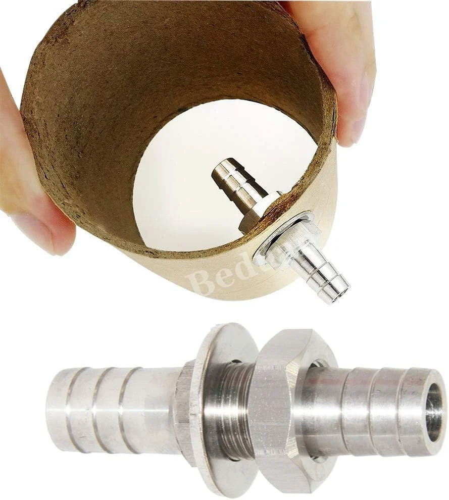 The Beduan 1/2" Hose Barb Thru-Bulk Bulkhead Straight Hex Union Stainless Steel Fitting (Pack of 2) is designed to provide a secure, reliable connection for your fluid transfer systems.