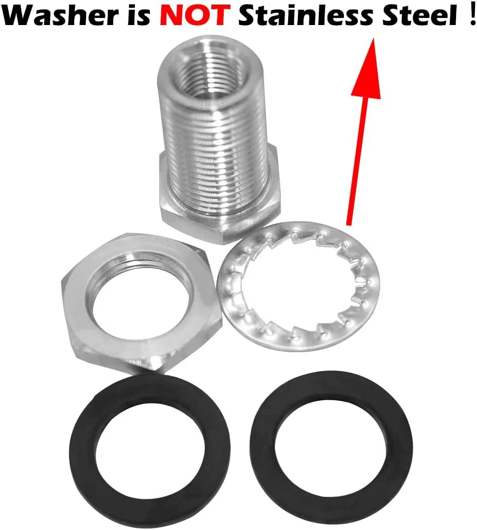 The Beduan 1/4" NPT Stainless Steel Female Bulkhead Coupler is a reliable and durable solution for creating secure through-wall or through-panel connections in a wide range of fluid and air handling systems. Manufactured from high quality 304 stainless steel, this coupler offers excellent corrosion resistance and maintains ductility at high temperatures, making it suitable for demanding industrial, commercial, and DIY applications. Its low magnetic permeability is ideal for environments where magnetic interference must be minimized or where non-magnetic components are preferred. Designed with a full female thread, the coupler features a 1/4" NPT female inner thread for standard pipe and fitting compatibility, ensuring an easy and secure connection with commonly used NPT components. The outer diameter of 20.96 mm is equivalent to 1/2" BSP, allowing it to fit precisely through pre-drilled holes and bulkheads designed for this size. This makes the Beduan bulkhead coupler particularly useful for tank connections, panel-mounted systems, manifolds, and custom piping layouts where a clean, leak-resistant pass-through is required. Each pack includes two bulkhead couplers, providing added value and flexibility for multi-connection setups or spare parts inventory. The included metal washer is designed to assist with proper mounting and sealing against the bulkhead surface; please note that the washer itself is not stainless steel. When properly installed, the coupler helps create a stable, vibration-resistant connection that supports long-term performance and reduces maintenance requirements. Engineered for ease of installation and dependable operation, the Beduan 1/4" NPT Stainless Steel Female Bulkhead Coupler is a smart choice for professionals and hobbyists who demand precision, durability, and compatibility in their piping systems. Whether used in compressed air lines, fluid transfer systems, or custom equipment builds, this coupler delivers consistent performance and a clean, professional installation.