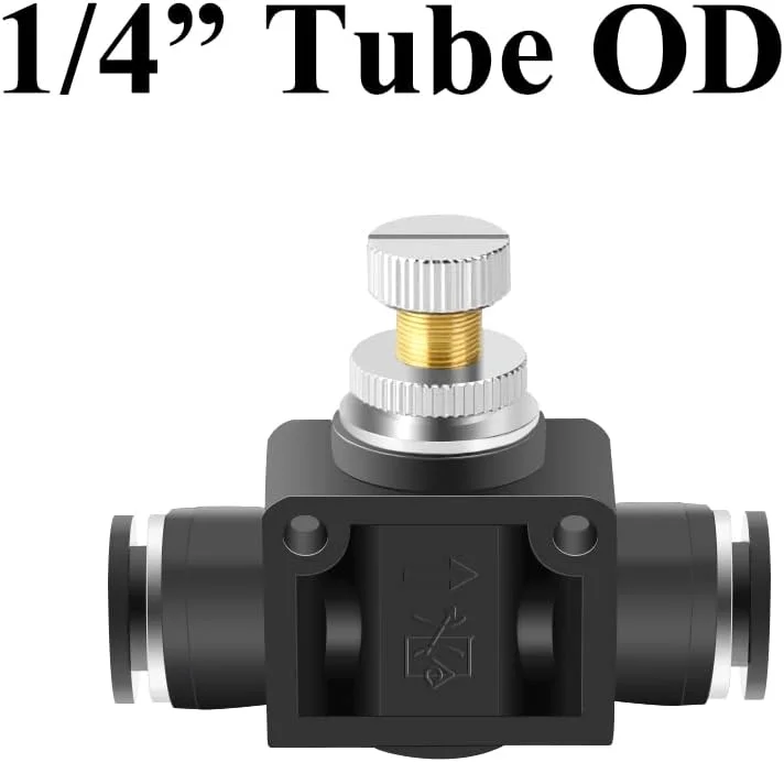 These Beduan 1/4 x 1/4 air flow control valves were perfect for fine tuning my small air system, the push to connect fittings grab the tubing securely and do not leak