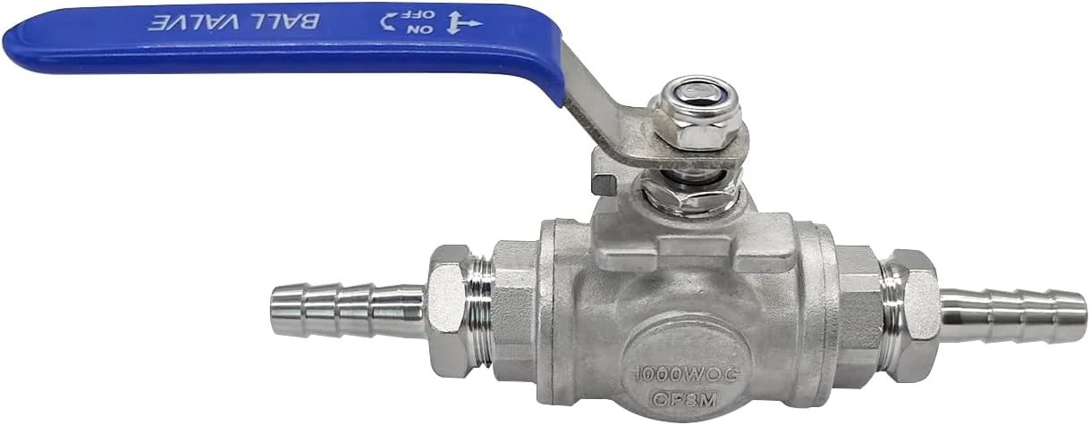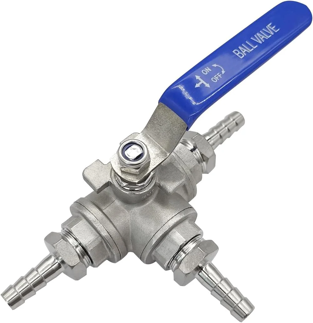 This Beduan 3 Way Shut Off Ball Valve has been perfect for my home brewing setup, the 3/8 hose barbs fit snugly and the stainless steel feels durable and reliable