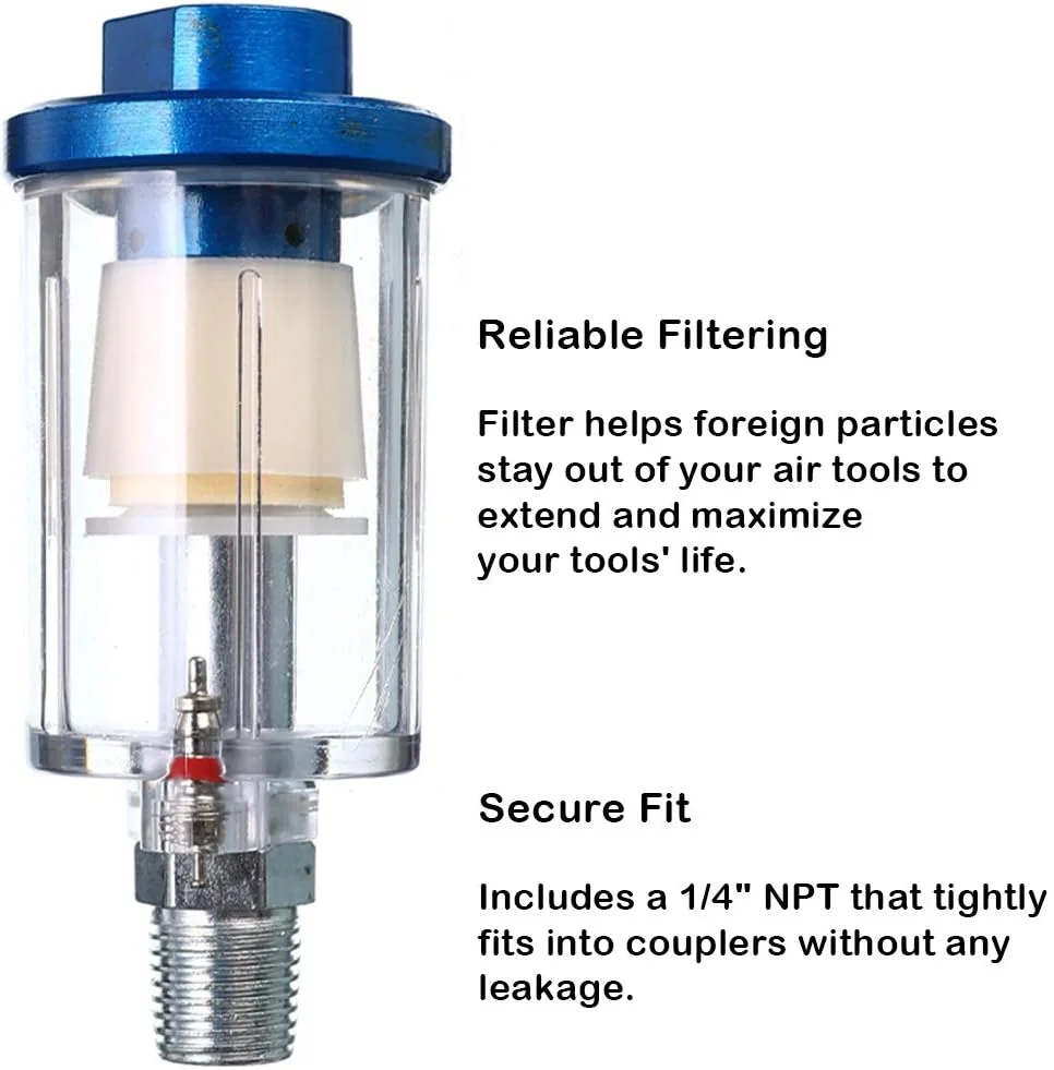The beduan Water Oil Separator Filter, 1/4" NPT Male and Female Thread Spray Gun Filter is designed to deliver cleaner, drier air to your pneumatic tools and spray equipment, helping you achieve professional results every time.