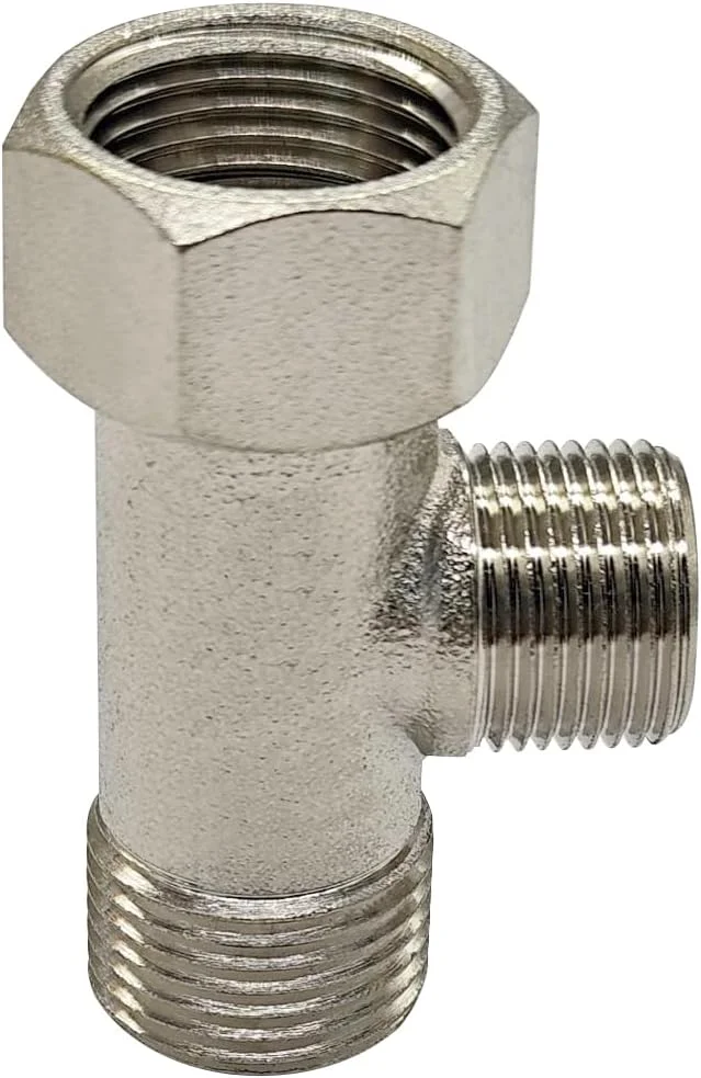 The 3 8 inlet and outlet plus the 1 2 male to 3 8 female adapter made this tee valve exactly what I needed for my under sink setup