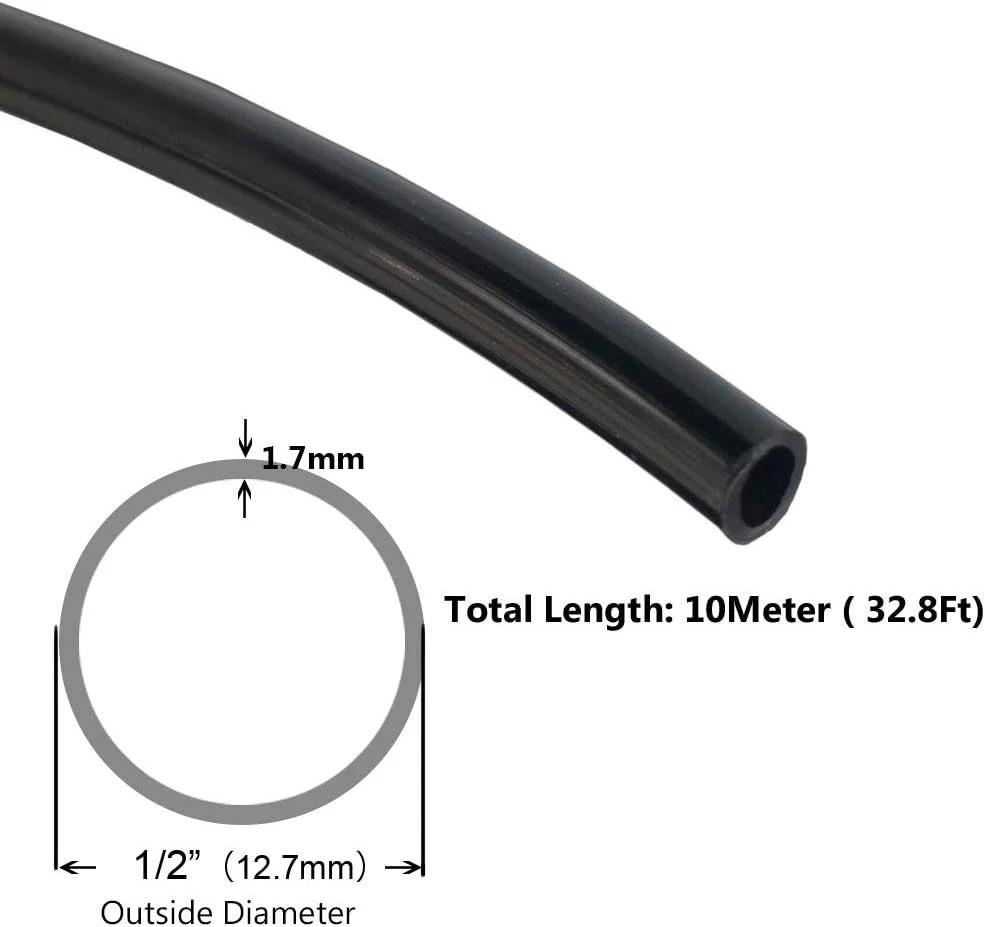 The 1/2 inch OD size is spot on, fits my existing fittings tightly and the line stays flexible without kinking
