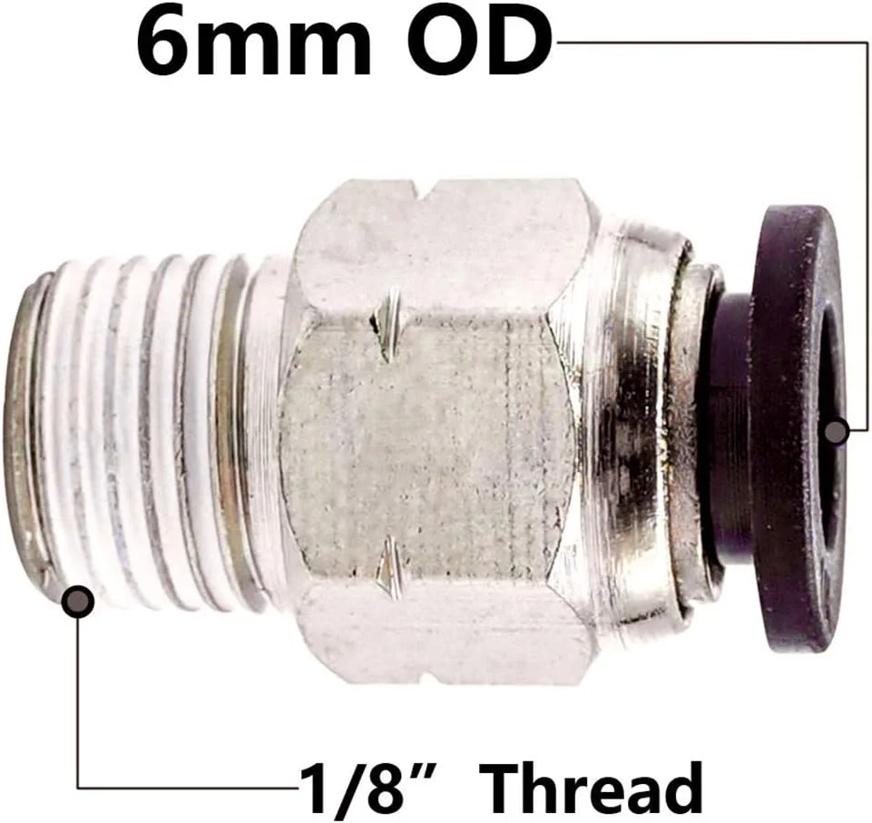 I used these 6mm to 1/8 inch fittings on my 3D printer air assist and they connected quickly with zero leaks