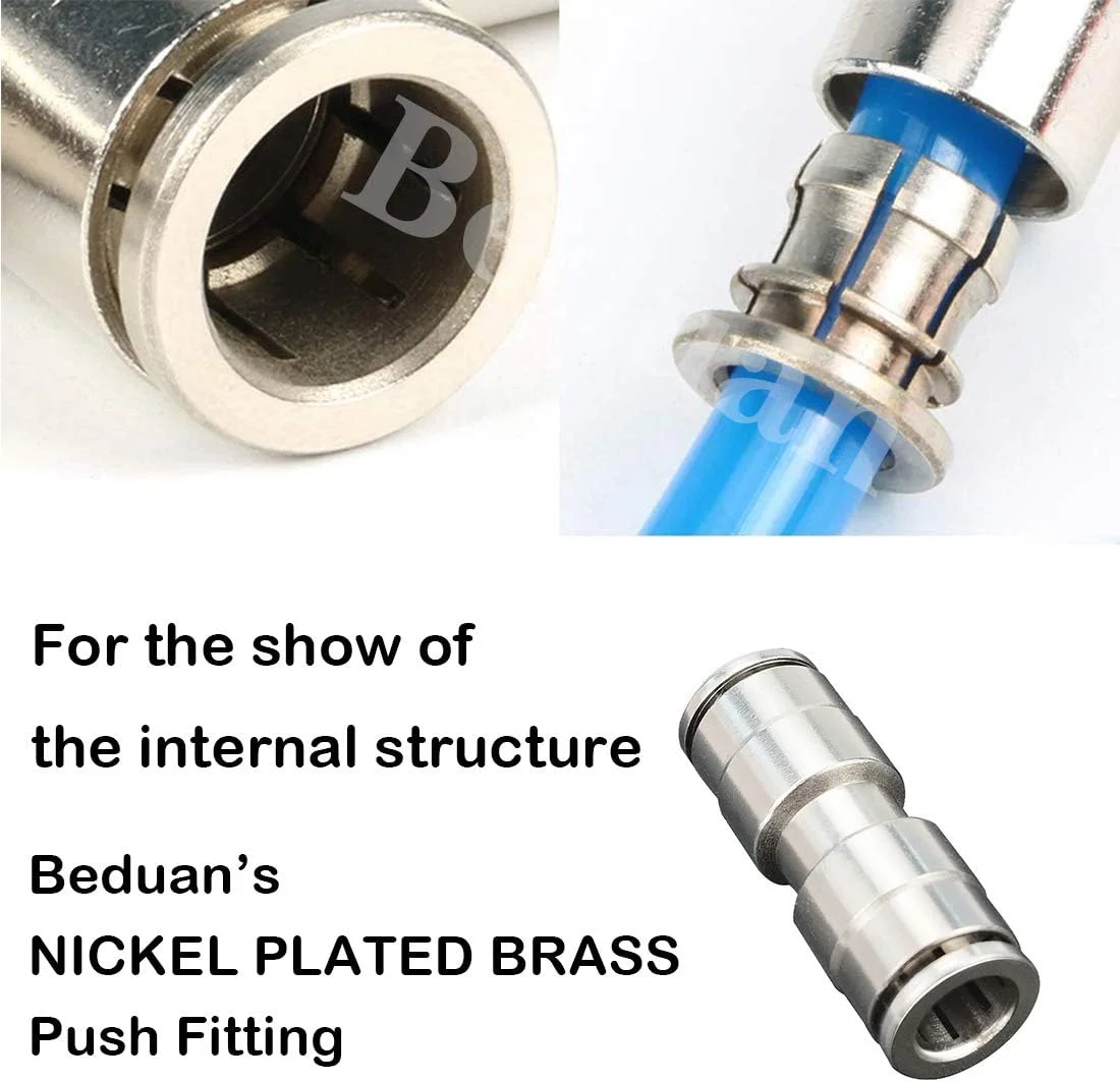 The Beduan Push to Connect Fitting 1/4" OD Nickel-Plated Copper Pneumatic Air Fitting Straight Union Tube Connector is designed to deliver reliable, leak-free performance in a wide range of pneumatic and fluid applications.