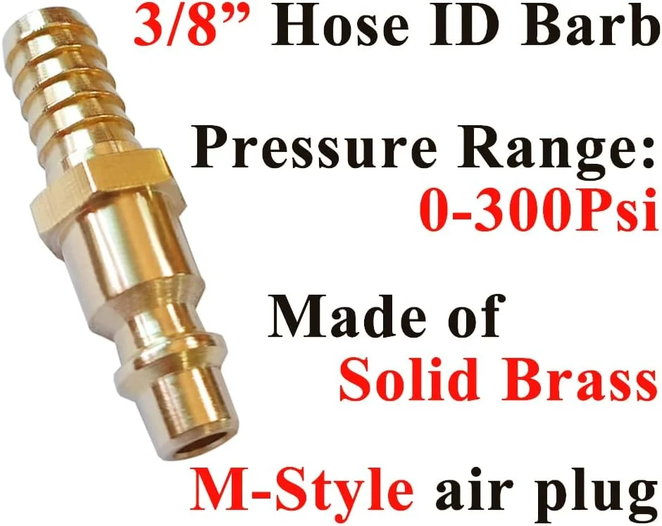 Discover the reliability and efficiency of the Beduan Solid Brass Air Hose Fittings 3/8" Barb Reducer Quick Connect, designed for demanding industrial and professional applications. This Industrial Type D (M style) air plug with a 3/8" hose ID barb reducer offers a secure, leak-resistant connection that helps you get the most out of your air tools and pneumatic systems. Manufactured from solid brass made of pure copper, these fittings are built for long-term durability, corrosion resistance, and stable performance under frequent use. Brass construction ensures excellent strength while maintaining precision in the connection, making these fittings ideal for workshops, factories, garages, and maintenance environments where reliability is essential. The quick connect design allows for fast, easy attachment and disconnection of air hoses and tools, minimizing downtime and improving workflow efficiency. The 3/8" hose ID barb reducer provides a tight, secure grip on the hose, helping to prevent air leaks and maintaining consistent pressure in your system. This ensures better tool performance, energy savings, and a safer working environment. Each package includes 2 pieces, giving you flexibility for multiple setups, replacements, or expansions of your existing air line system. Compatible with standard Industrial Type D (M style) couplers and plugs, these fittings integrate smoothly into most common pneumatic configurations without the need for special adapters. Whether you are setting up a new compressed air system or upgrading existing connections, the Beduan Solid Brass Air Hose Fittings deliver dependable performance, easy installation, and long service life. Choose Beduan for precision-engineered brass fittings that support your productivity, protect your equipment, and provide the consistent air flow your applications demand.