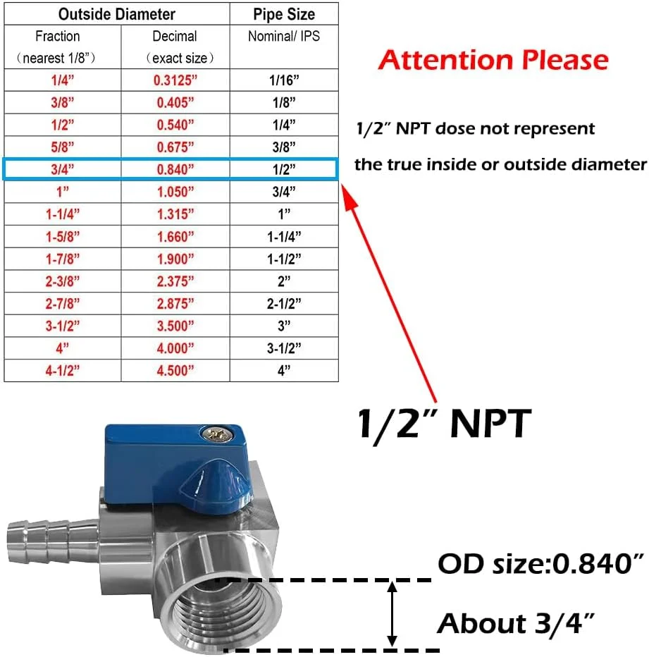 This Beduan stainless 3/8 barbed x 1/2 NPT female 90 degree elbow ball valve shut off is compact and seals perfectly with no leaks in my homebrew setup