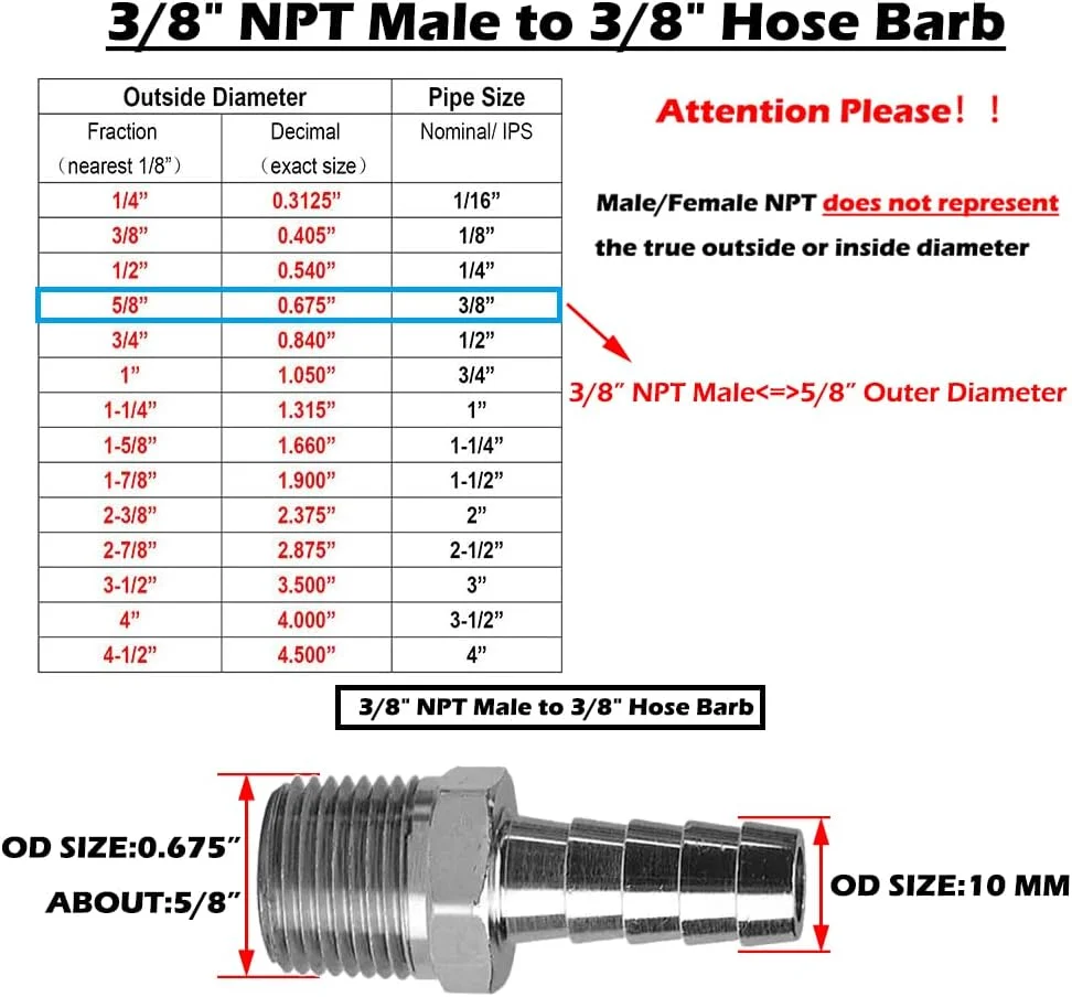 | Size | 3/8" Barb to 3/8" NPT |