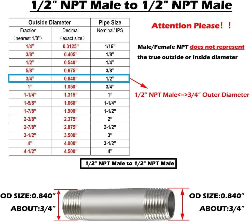 | Size | 1/2" NPT x 1/2" NPT Male |